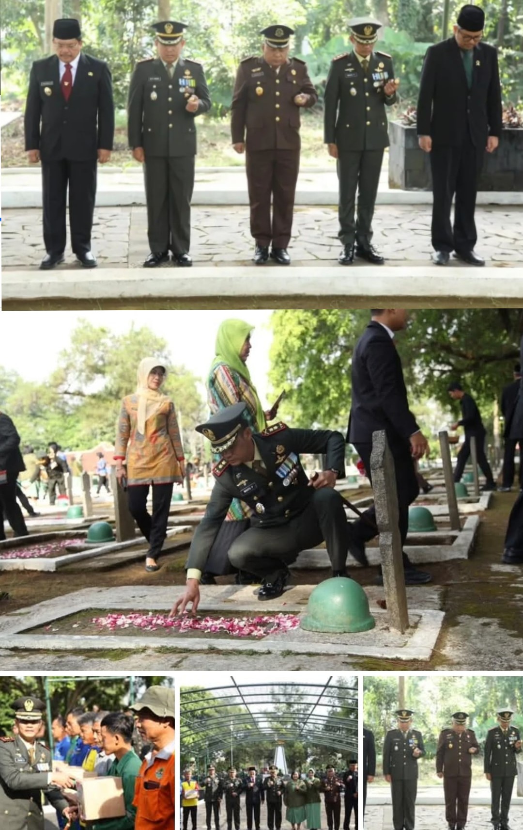 Di akhir ziarah dilaksanakan bakti sosial pemberian paket Sembako kepada petugas kebersihan TMP dan masyarakat sekitar. (Penkostrad).