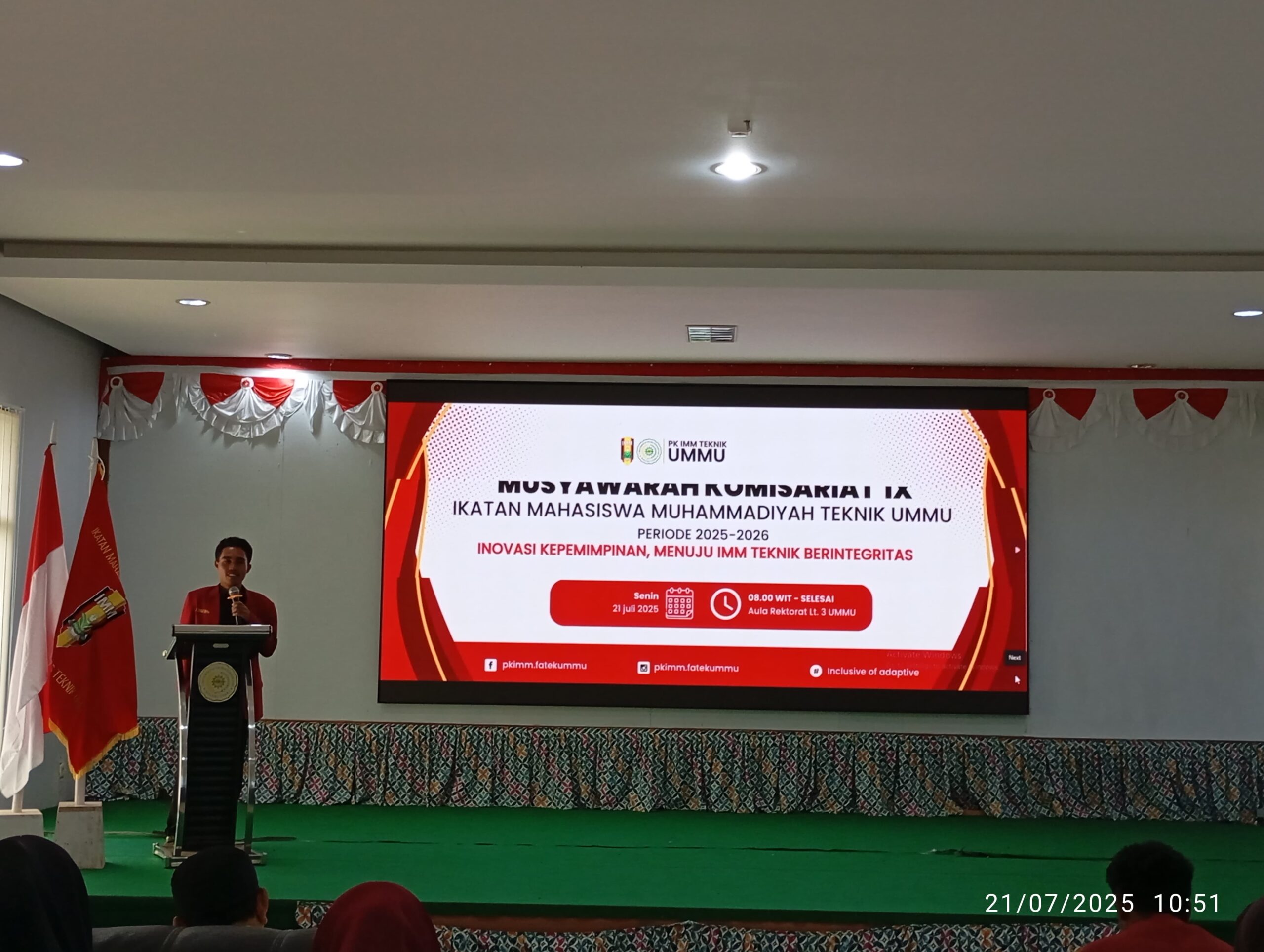 Ternate,Molokunews.com – Ikatan Mahasiswa Muhammadiyah (IMM) Komisariat Fakultas Teknik Universitas Muhammadiyah Maluku Utara (UMMU) sukses menyelenggarakan Musyawarah Komisariat (Muskom) ke-IX, Senin (21/7/2025). Kegiatan ini berlangsung di Lantai 3 Gedung Rektorat UMMU dan mengusung tema “Inovasi Kepemimpinan Menuju IMM Teknik Berintegritas.”