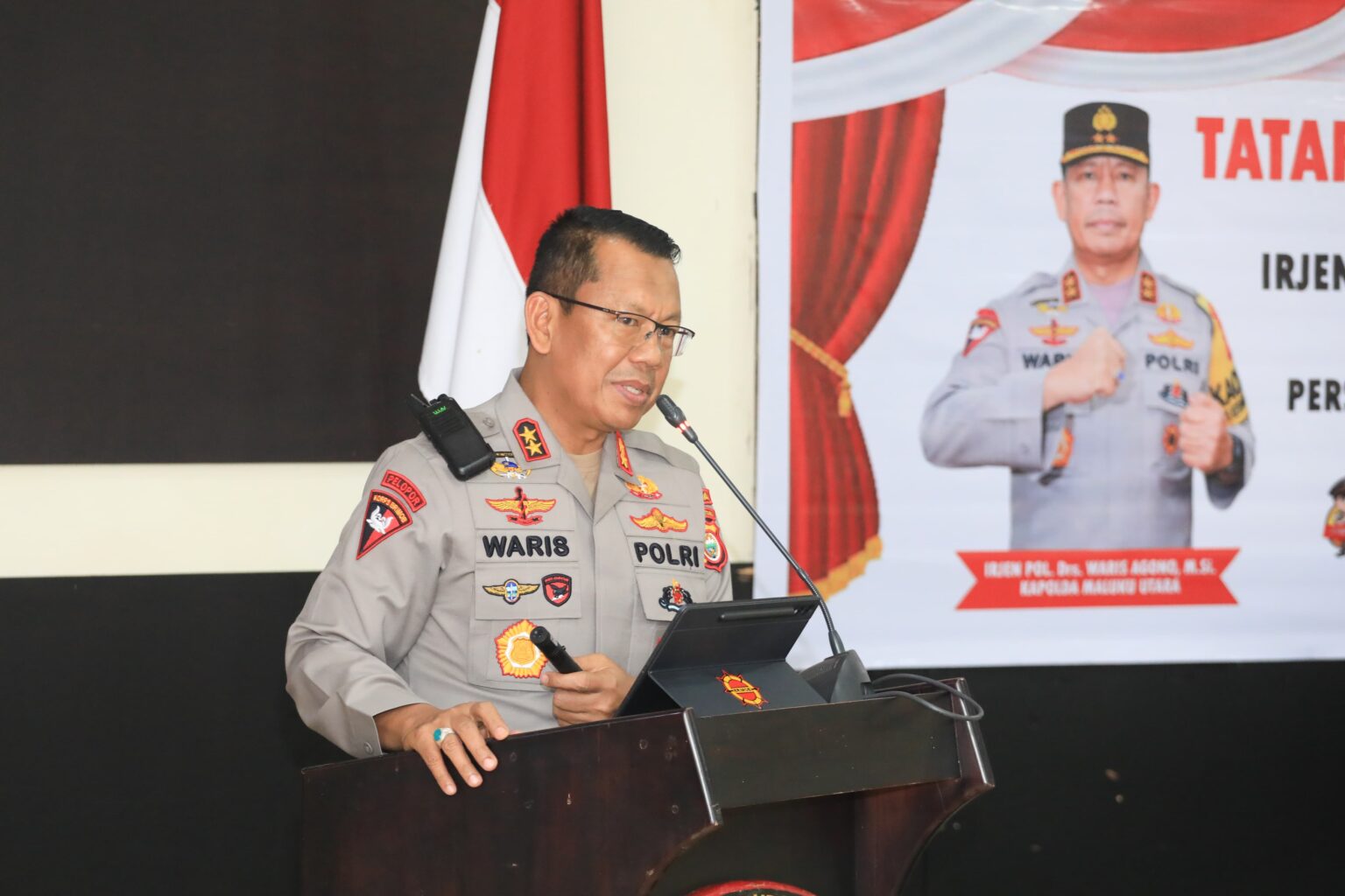 Halmahera Utara , MolokuNews.com – Kepala Kepolisian Daerah (Kapolda) Maluku Utara, Irjen Pol. Drs. Waris Agono, M.Si, melaksanakan kunjungan kerja ke Kabupaten Halmahera Utara dan memberikan arahan kepada jajaran Polres Halut, Jumat (27/6/2025).
