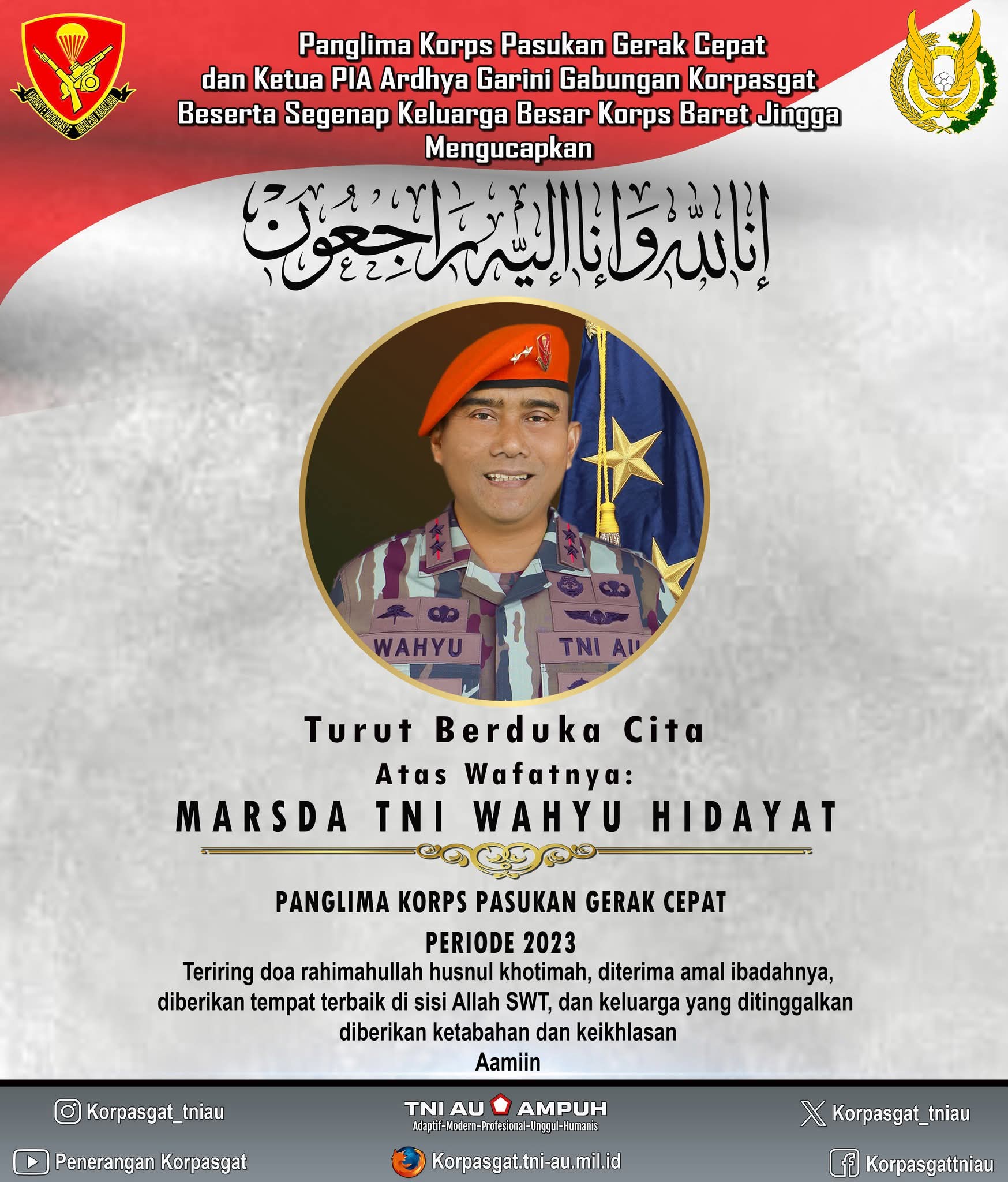 Panglima Korps Pasukan Gerak Cepat dan Ketua PIA Ardhya Garini Gabungan Korpasgat beserta Segenap Keluarga Besar Korps Baret Jingga
