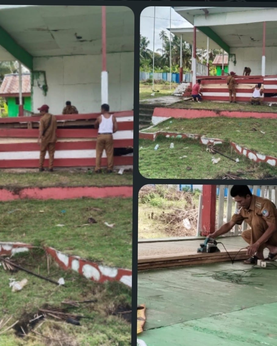Camat Gane Barat Utara, Rajak HI Dayan S.Pi (Sarjana Perikanan), beserta stafnya melakukan kerja bakti dalam pembuatan panggung di depan gedung STQ Desa Dolik.