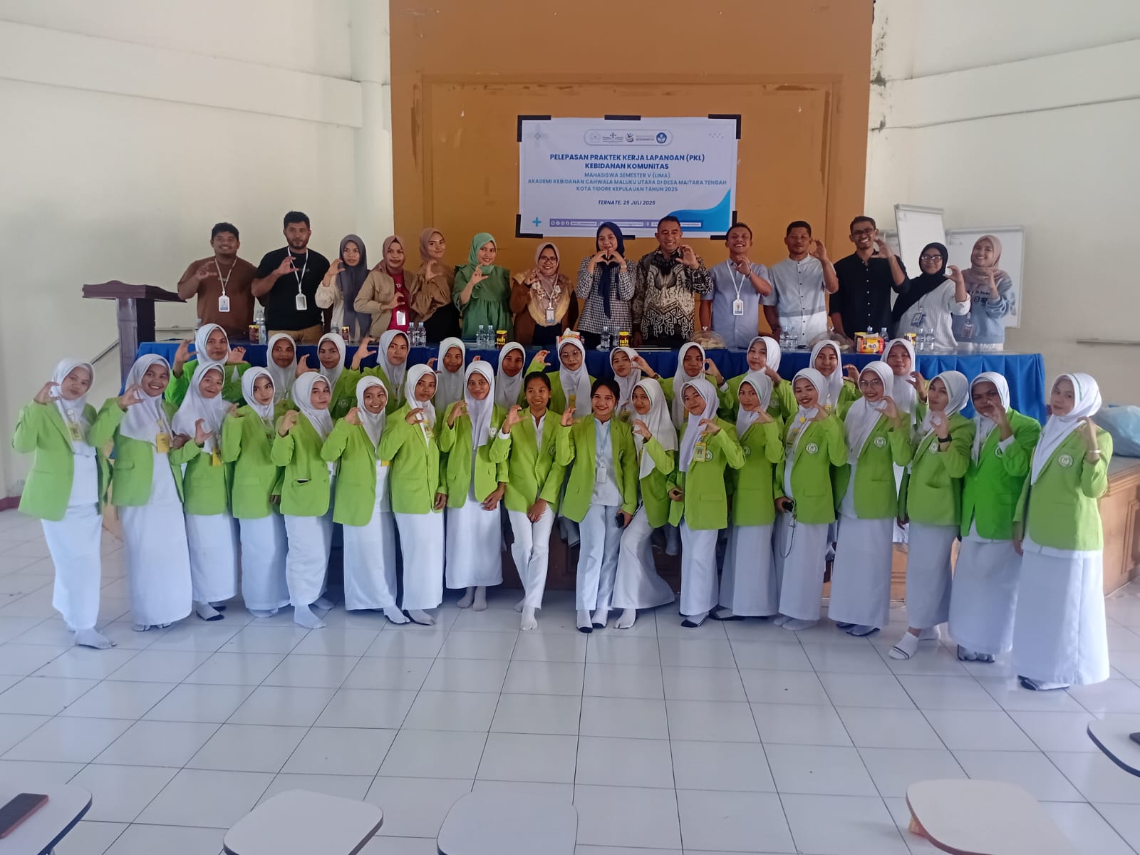Ternate,Molokunews.com– Sebanyak 31 mahasiswa Program Studi Kebidanan Akademi Cahwala Maluku Utara resmi dilepas untuk melaksanakan kegiatan Praktik Kerja Lapangan (PKL) Kebidanan Komunitas di Desa Maitara Tengah, Kecamatan Tidore Utara, Tidore Kepulauan, pada Jumat, 25 Juli 2025.