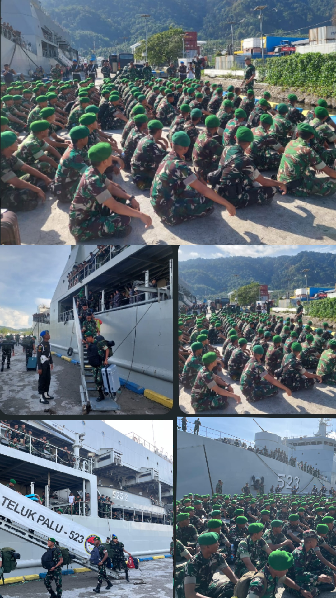 Halmahera Selatan -Kodim 1509/Labuha menyambut kedatangan 177 personel Batalyon TP-867/Manggasa yang tiba di Pelabuhan Desa Babang Kecamatan Bacan Timur, Kabupaten Halmahera Selatan, dengan menggunakan KRI Teluk Palu 523,